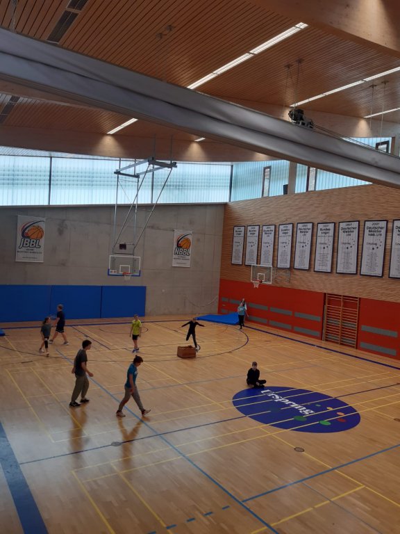 Ráno nás Oliver vyzvedl u hotelu a jeli jsme do školy, kde jsme měli domluvené setkání s jedním z trenérů místního basketbalového týmu. A tato sportovní aktivita je další z věcí, na které si Urspringschule zakládá a je pro ni velmi významná a prestižní. Studenti, kteří jsou draftováni do školního týmu se mohou následně dostat do nejprestižnějších týmů v Německu i v Evropě / dokonce někteří odešli díky této sportovně-studijní zkušenosti studovat VŠ do USA. Bylo ale zdůrazněno, tito "baskeťáci" nemají žádné úlevy, ale musejí na sobě makat jak sportovně, tak studijně. Samozřejmě je jim třeba nabídnuto i sportovní stipendium a pobyt v místních ubytovacích prostorách. A jedním z těchto "baskěťáků" je i Čech Vašek z Prahy, který nás po kampusu školy také prováděl. Zjistili jsme, že byl do školy vybrán přes svého basketbalového agenta letos v září. Jeho letošní školní rok je zatím zaměřen pouze na výuku němčiny (tu má několik hodin denně), aby se mohl během roku plynule zapojit do běžné výuky, která zde probíhá v němčině. A následně se účastní tréninků basketbalu. A musíme říct, že si opravdu hodně uvědomuje, jakého úspěchu může dosáhnout a usilovně na sobě maká, že je již nyní (po 2 měsícíh, kdy jeho znalost němčiny byla nulová) schopen komunikovat se spolužáky o běžných věcech v němčině.